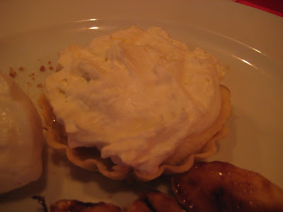 • I don’t think the tart shell was made in house, but I’m not sure. It was a crumbly shortbread like cookie crust, but it didn’t taste homemade. It was filled with bananas, dry caramel and topped with cream.